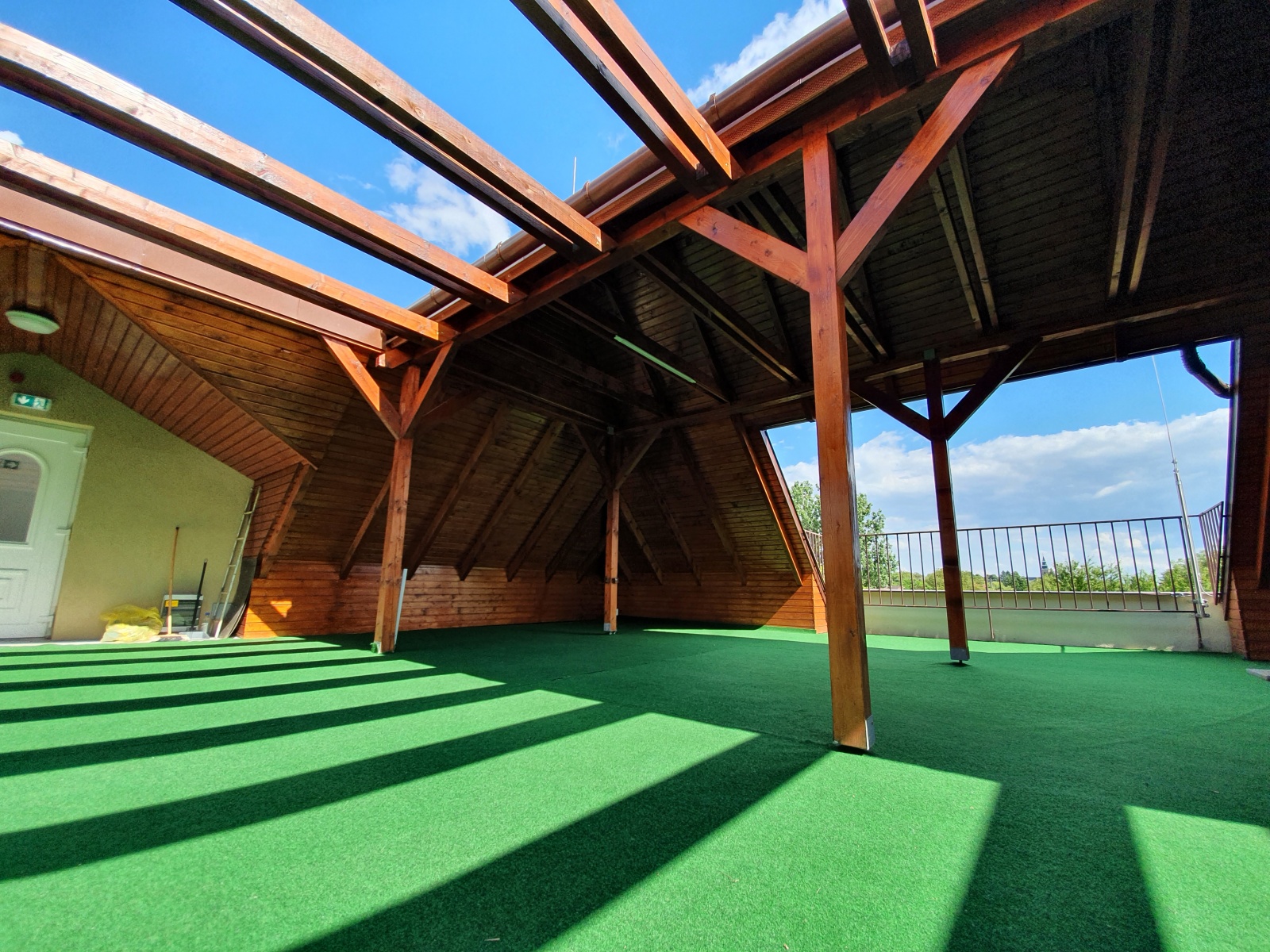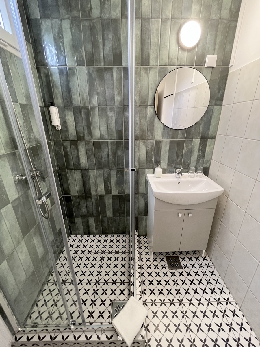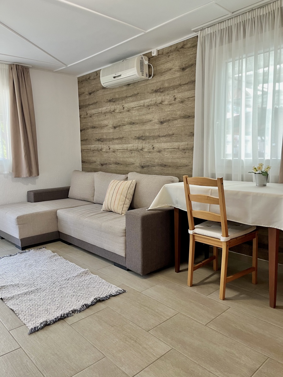 A régi épület emeletén található, klimatizált 4 fős Stúdió jellegű apartmanok. Egy légtérben található a hálórész (franciaágy), nappali, ágyazható kanapé, konyhasarok mikrohullámú sütővel, vízforralóval, alapvető étkezési eszközökkel, hűtővel, televízióval. Saját fürdőszobával(zuhanykabin), Ezek a szobák nem rendelkeznek terasszal.